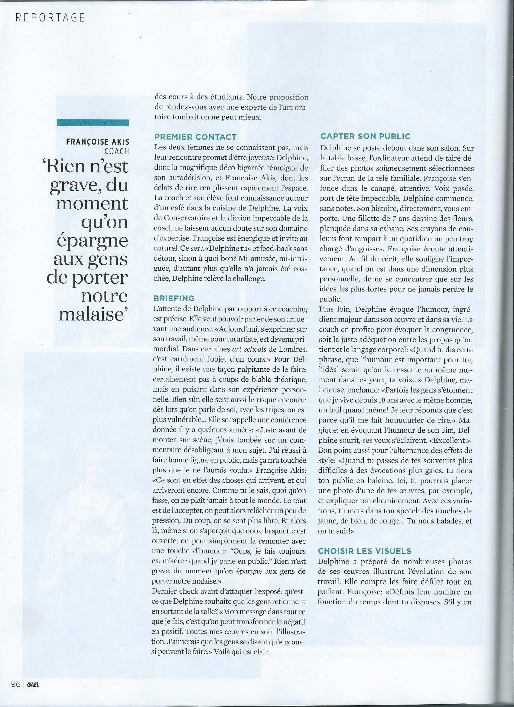 J’ai eu l’occasion, à la demande de Gaël magazine, dans le cadre d’un article sur une personnalité, de coacher Delphine Boël.